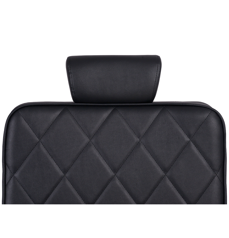 O encosto possui costuras reforçadas e espuma ergonómica para um apoio ideal das costas. Inclui ainda apoio de pés reversível e apoio de cabeça extensível, proporcionando total versatilidade e conforto em cada atendimento.