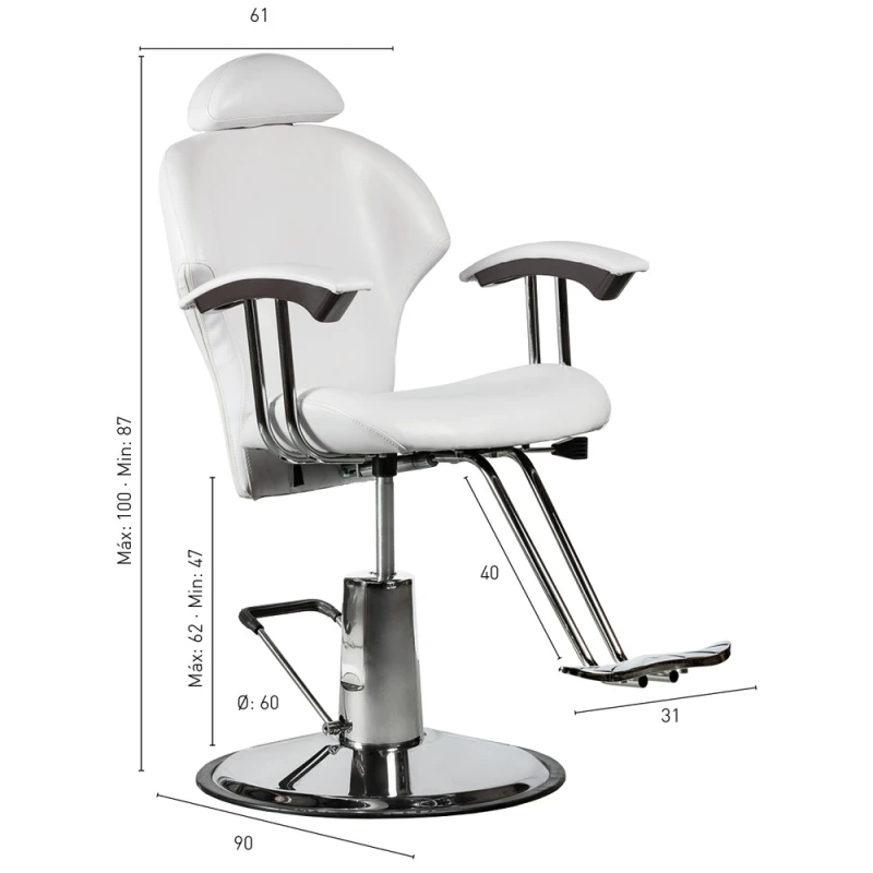 Com apoio para pés e encosto de cabeça ajustável em altura, proporciona ergonomia e bem-estar tanto para o cliente quanto para o profissional. A base redonda garante maior estabilidade, enquanto a estrutura de aço reforçado e o sistema de suporte espesso asseguram durabilidade e segurança no uso diário.