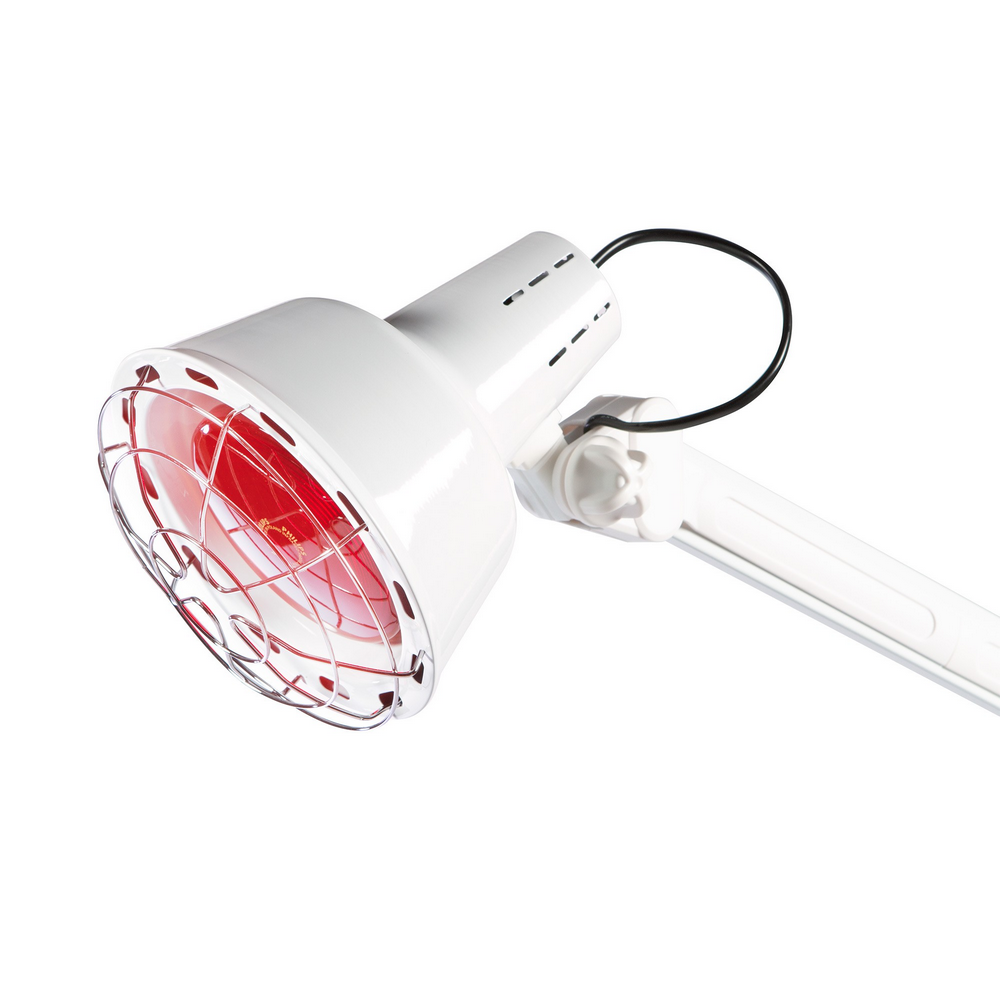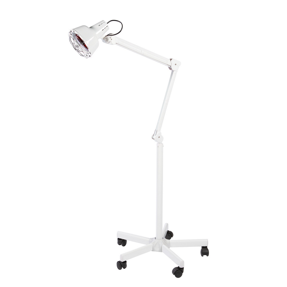 Esta lâmpada de calor por infravermelhos tem isolamento térmico na tampa, uma base equipada com 5 rodas e o seu braço articulado incorpora um sistema anti-entalamento.