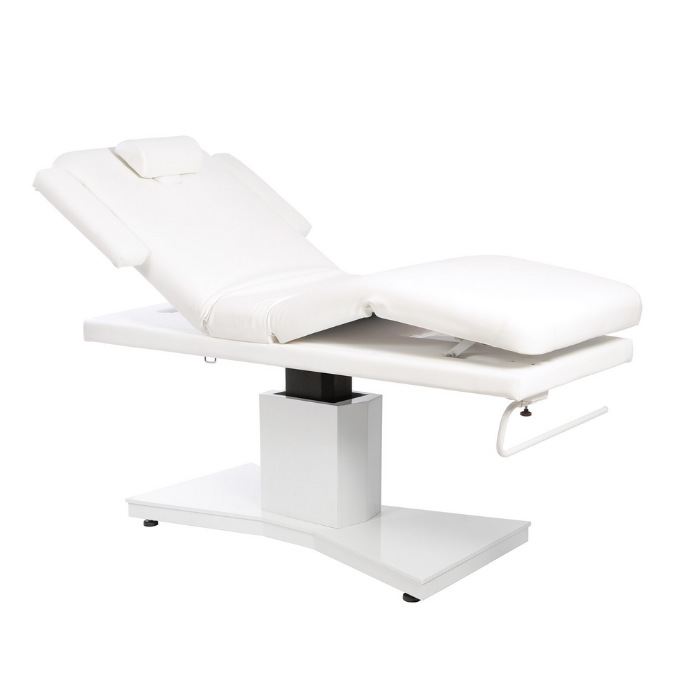 Marquesa Elétrica Bere da Vibbel é ideal para spas e centros de beleza. Uma maca elegante e de alto desempenho com estrutura de alumínio e base de madeira. Possui 3 motores que permitem controlar a altura, a inclinação do encosto, do apoio de pés e da zona central. O encosto, com orifício facial, atinge uma inclinação de 70º e o apoio de pés 20º.